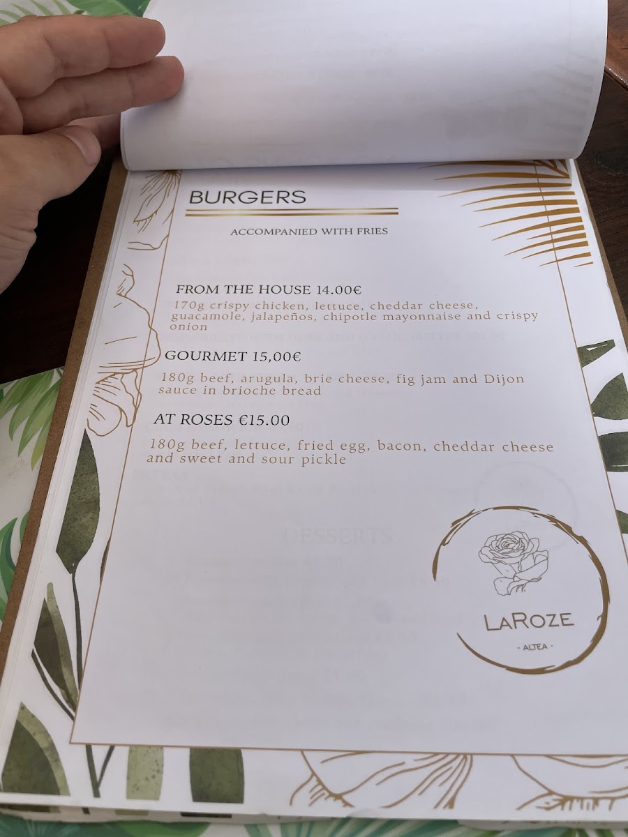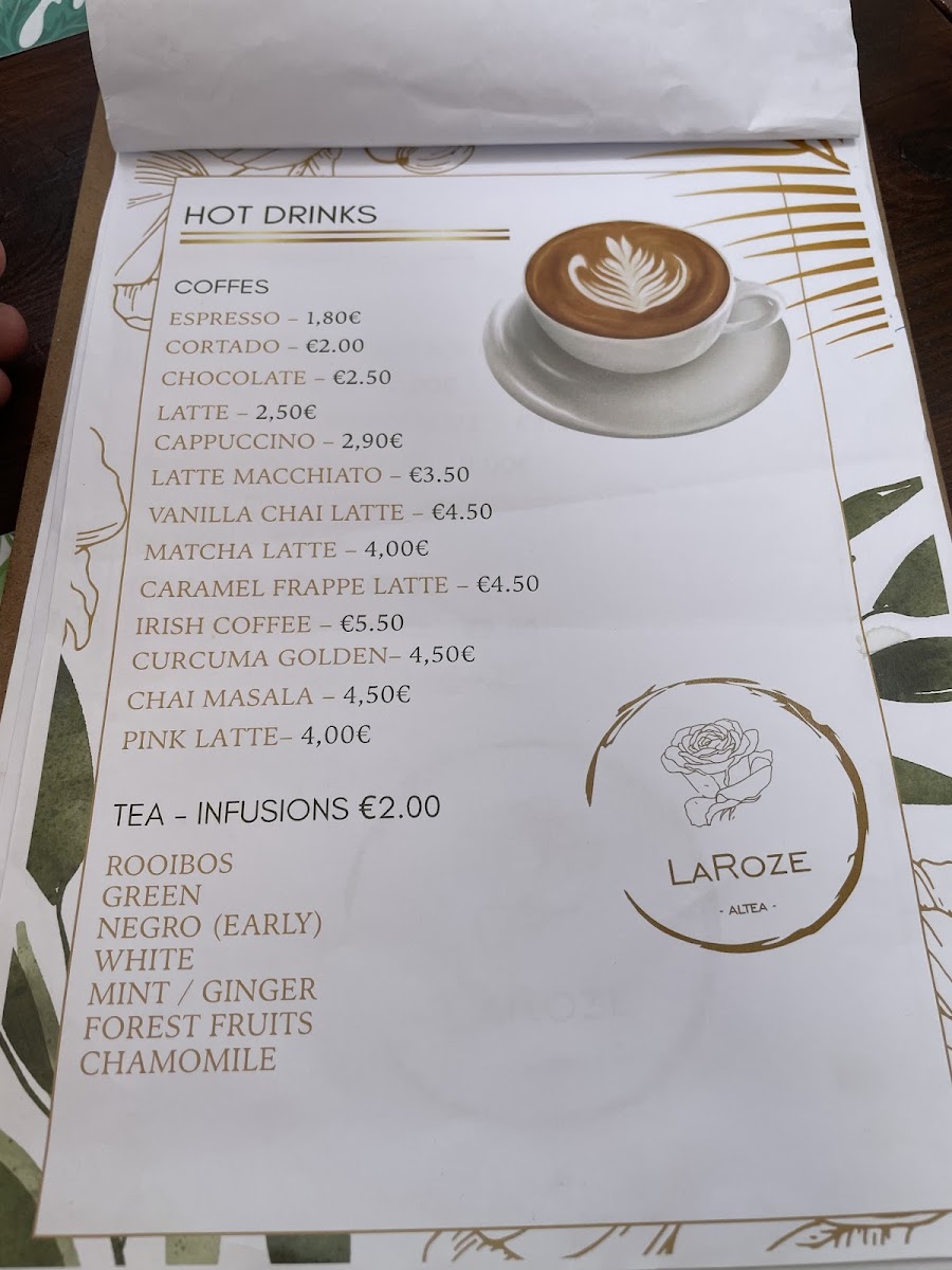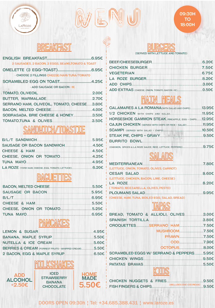 The menu at La Roze new concept offers a variety of options suitable for breakfast, light meals, and casual dining throughout the day. It is structured into clearly defined groups to facilitate easy selection.